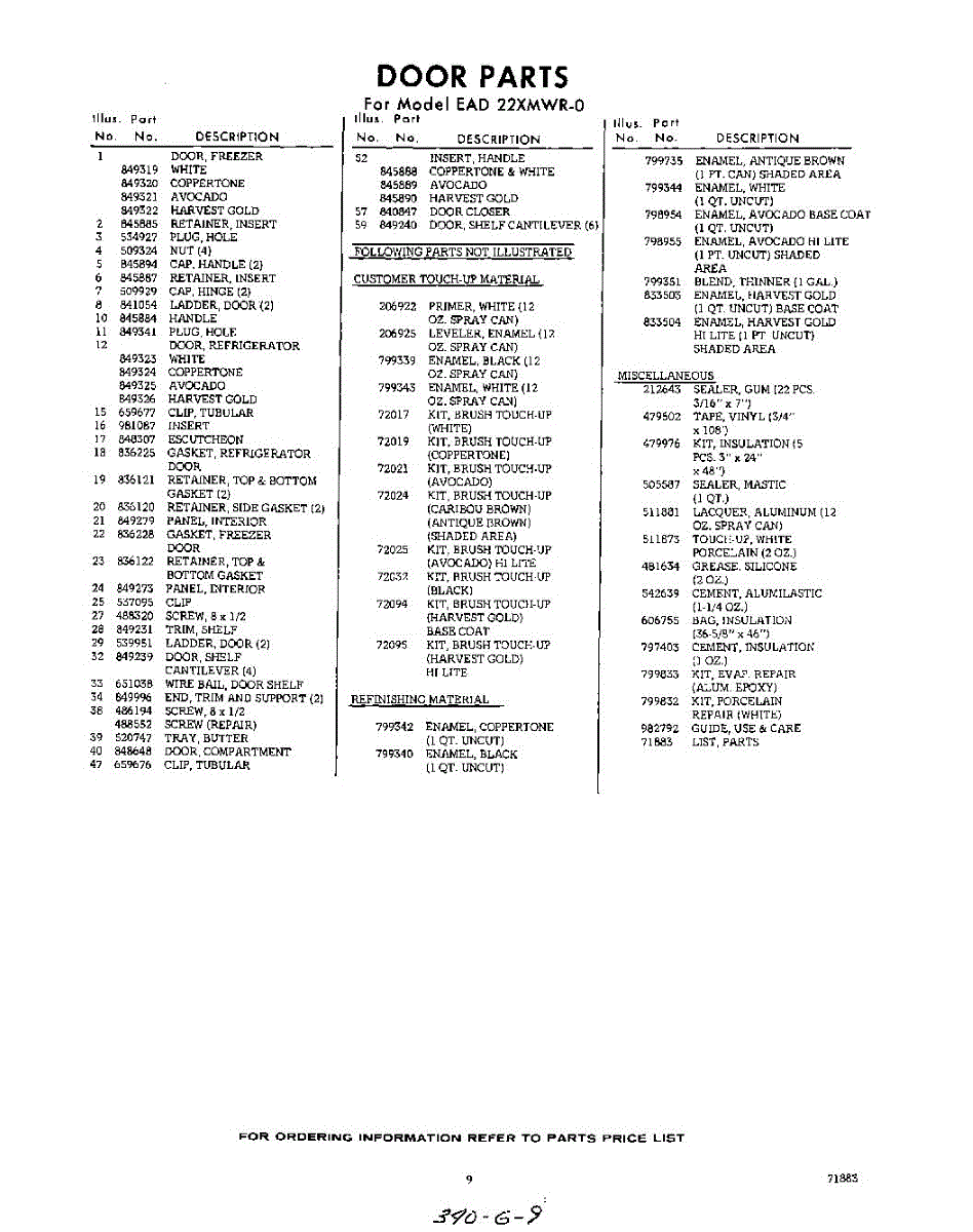 Parts for EAD22XMWR0