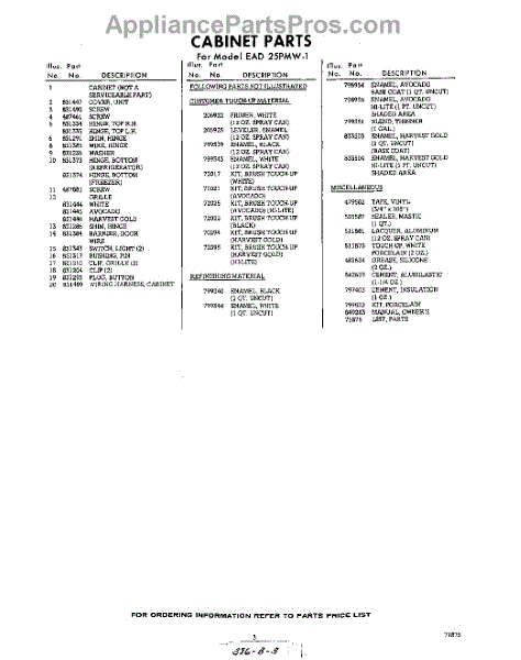 Parts for EAD25PMW1