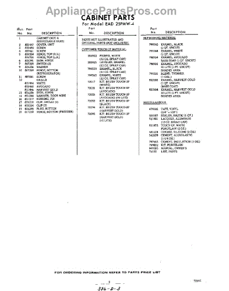 Parts for EAD25PMW4