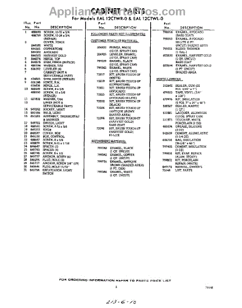Parts for Whirlpool EAL12CTWR0: 03 - Lit / Optional Parts