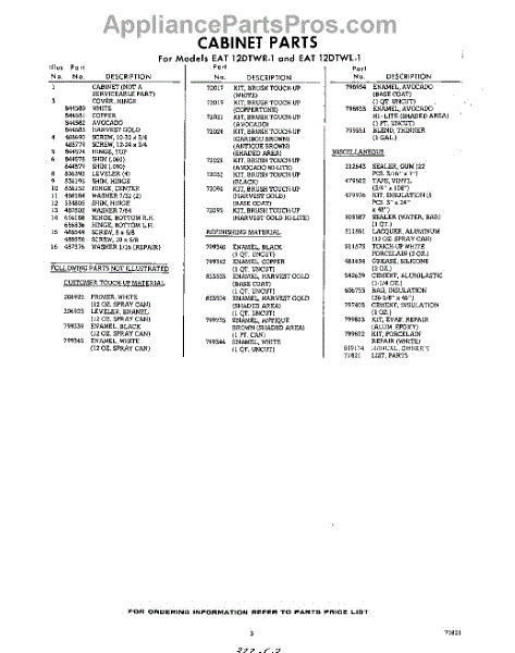 Parts for Whirlpool EAT12DTWR1: 03 - Lit / Optional Parts