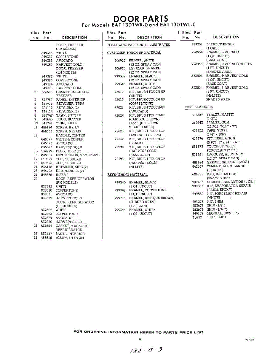 Parts for Whirlpool EAT13DTWR0: 09 - Lit / Optional Parts
