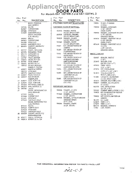 Parts for Whirlpool EAT13DTWR3: 09 - Lit / Optional Parts