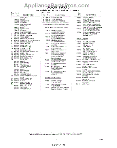 Parts for Whirlpool EAT15JMW4: 11 - Lit / Optional Parts