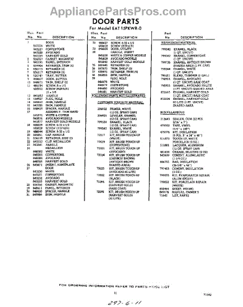 Parts for Whirlpool EAT15PKWR0: 11 - Lit / Optional Parts