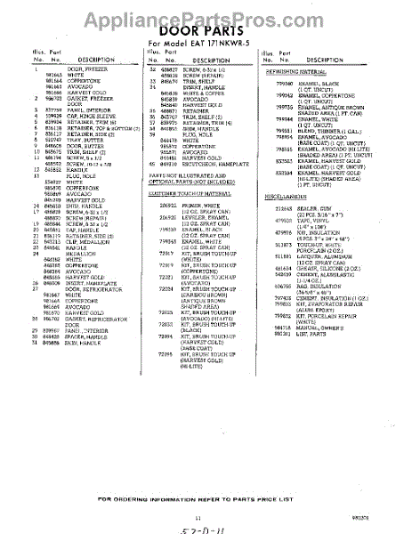 Parts for Whirlpool EAT171NKWR5: 11 - Lit / Optional Parts