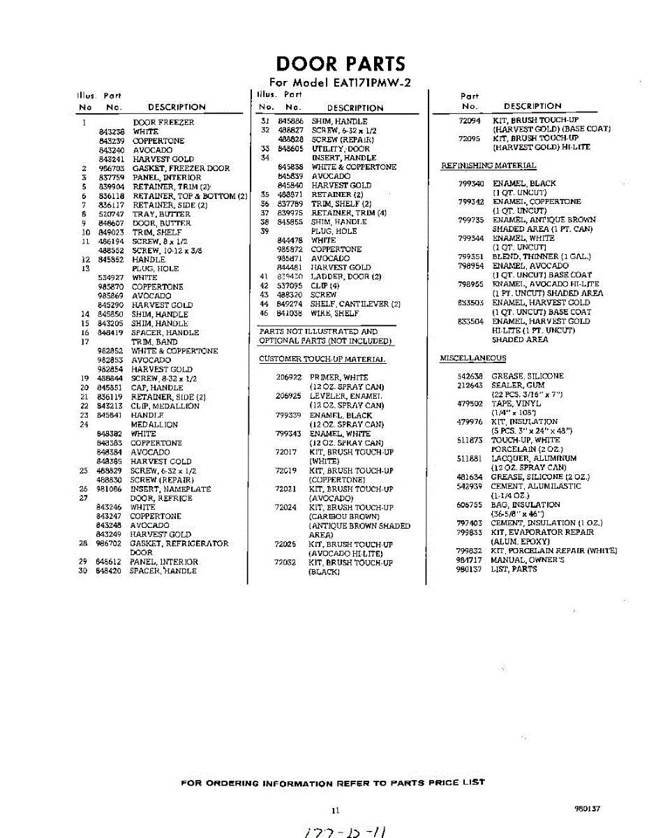 Parts for Whirlpool EAT171PMW2: 11 - Lit / Optional Parts
