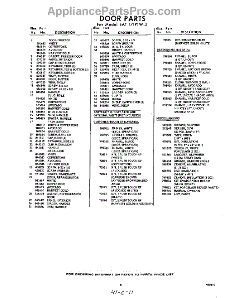 Parts for Whirlpool EAT171PTW2: 11 - Lit / Optional Parts
