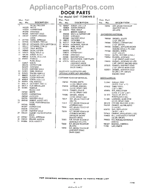 Parts for Whirlpool EAT172HKWR0: 11 - Lit / Optional Parts
