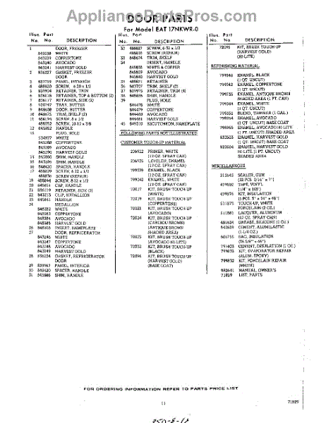 Parts for Whirlpool EAT17NKWR0: 11 - Lit / Optional Parts