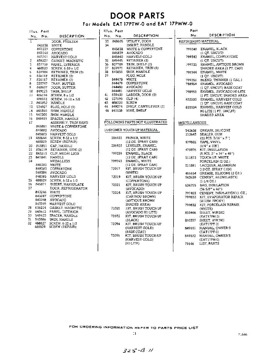Parts for Whirlpool EAT17PMW0: 11 - Lit / Optional Parts