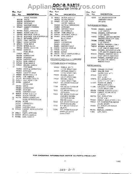 Parts for Whirlpool EAT17PTWR3: 11 - Lit / Optional Parts