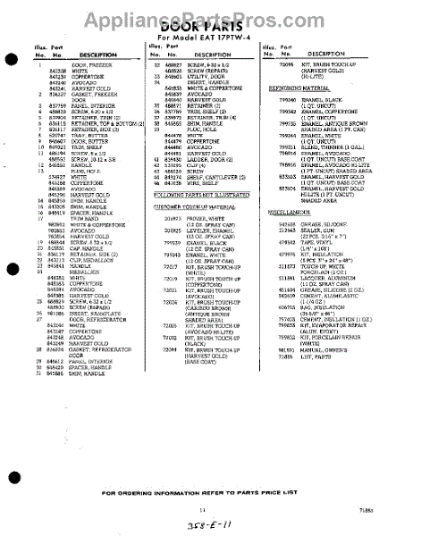 Parts for Whirlpool EAT17PTWR4: 11 - Lit / Optional Parts