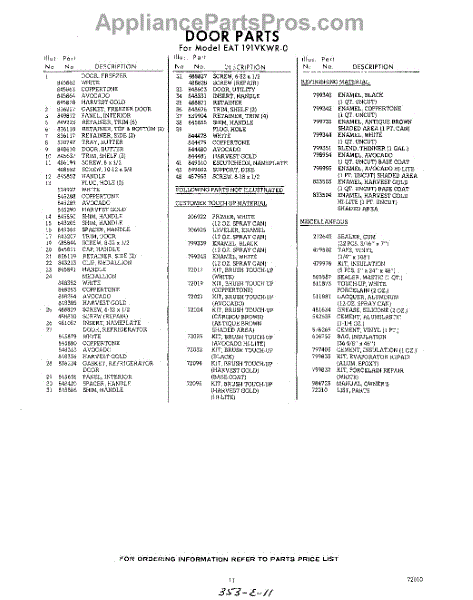 Parts for Whirlpool EAT191VKWR0: 11 - Lit / Optional Parts
