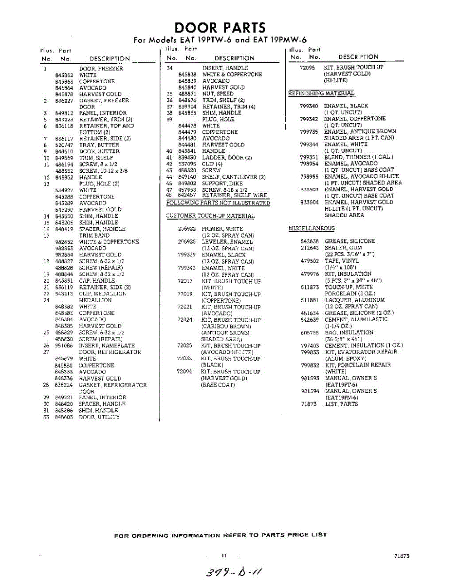 Parts for Whirlpool EAT19PMW6: 11 - Lit / Optional Parts