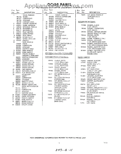 Parts for Whirlpool EAT19PTW4: 11 - Lit / Optional Parts