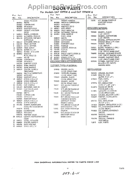 Parts for Whirlpool EAT19PTW6: 11 - Lit / Optional Parts