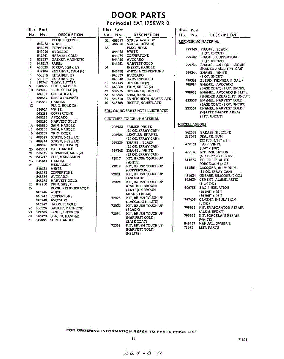Parts for Whirlpool EAT19SKWR0: 11 - Lit / Optional Parts