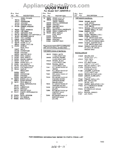 Parts for Whirlpool EAT22NKWR0: 11 - Lit / Optional Parts