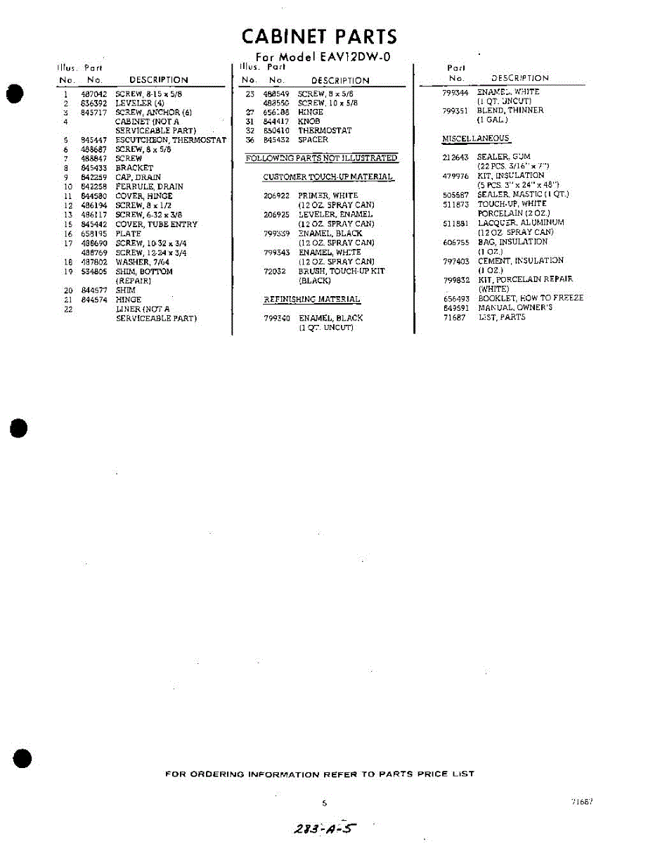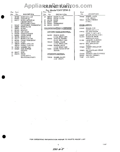 Parts for EAV12DW0