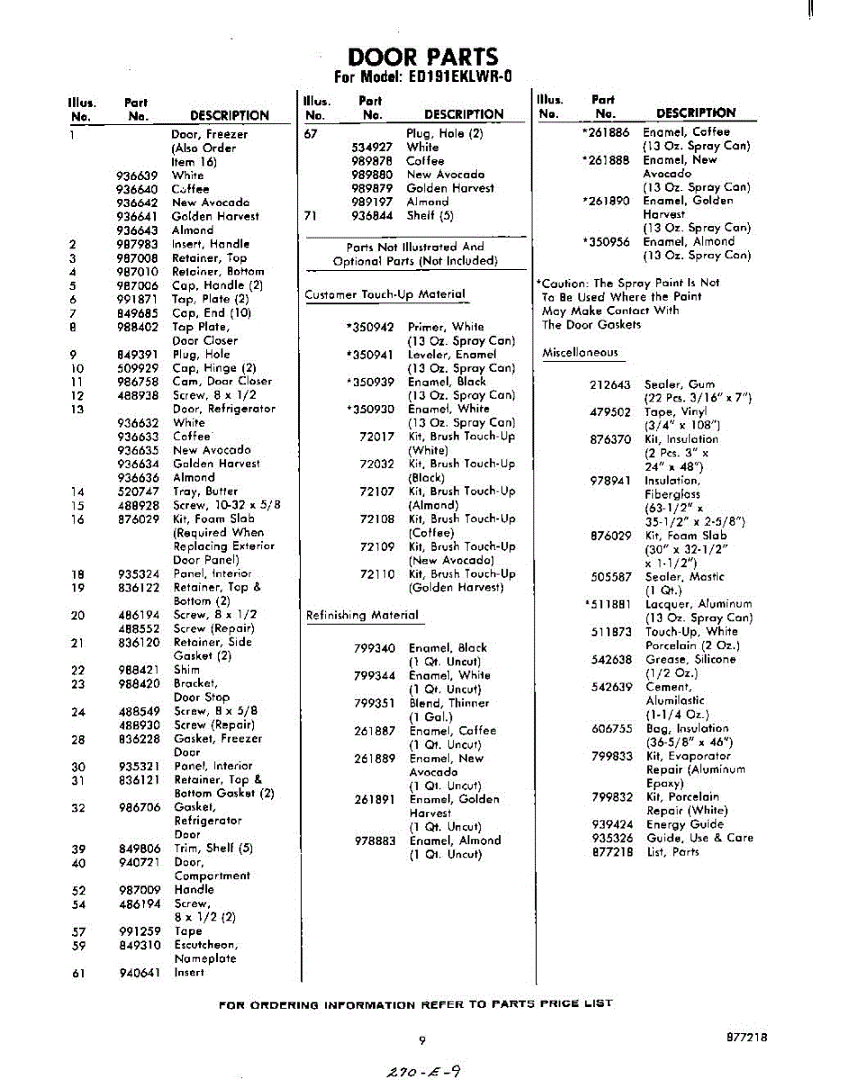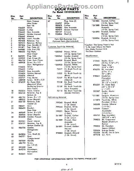 Parts for Whirlpool ED191EKLWR0: 09 - Lit / Optional Parts