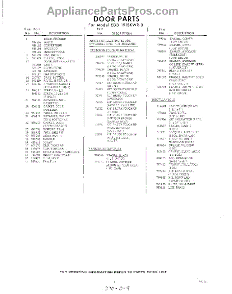 Parts for Whirlpool EDD191SKWR0: 09 - Lit / Optional Parts