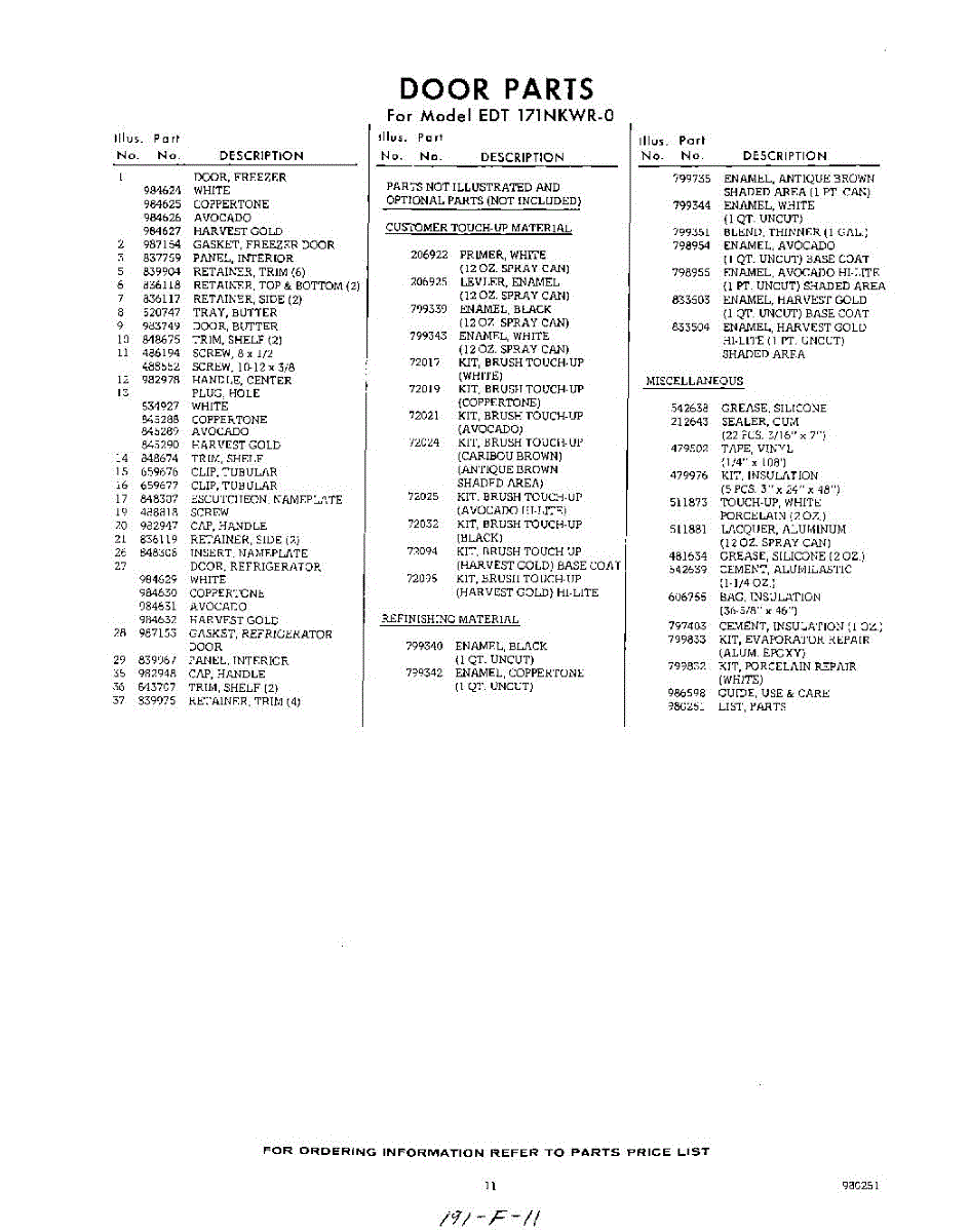 Parts for Whirlpool EDT171NKWR0: 11 - Lit / Optional Parts