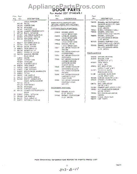 Parts for Whirlpool EDT171NKWR1: 11 - Lit / Optional Parts