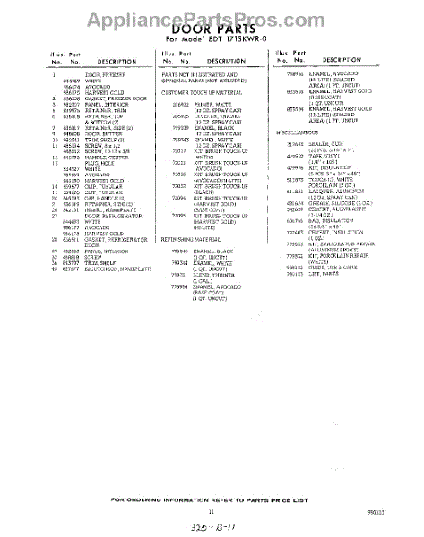 Parts for Whirlpool EDT171SKWR0: 11 - Lit / Optional Parts