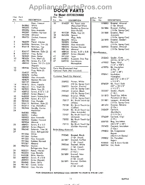 Parts for Whirlpool EDT202ZKWR0: 11 - Lit / Optional Parts