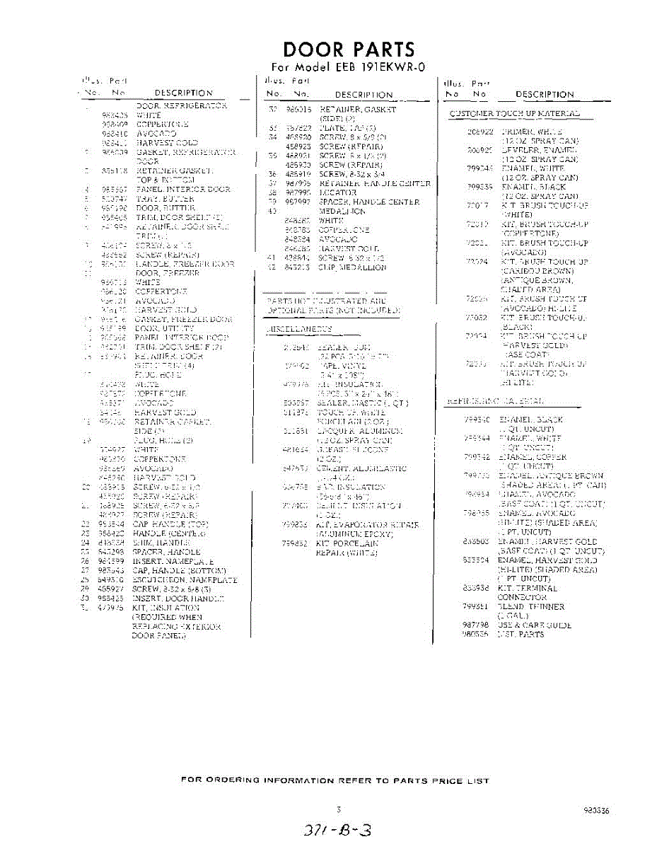 Parts for Whirlpool EEB191EKWR0: 03 - Lit / Optional Parts