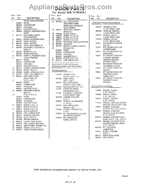 Parts for Whirlpool EEB191PKWR1: 03 - Lit / Optional Parts