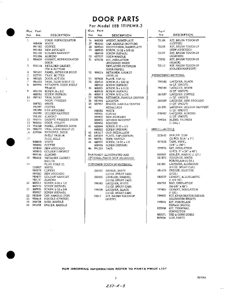 Parts for EEB191PKWR3