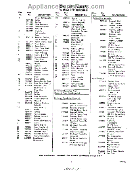 Parts for Whirlpool EEB192MKWR0: 03 - Lit / Optional Parts
