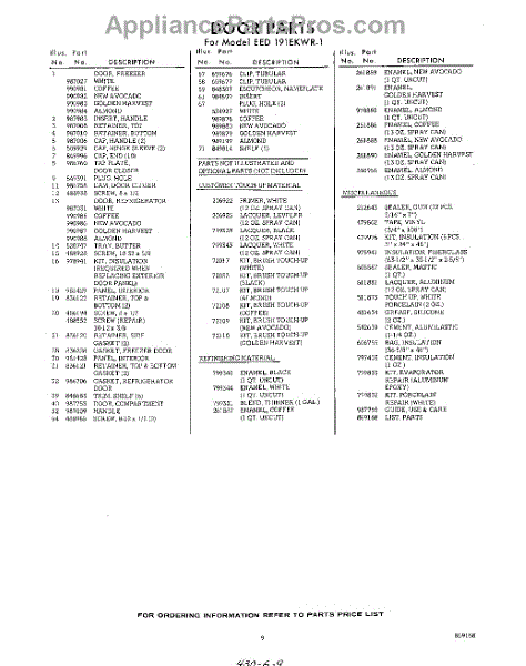 Parts for Whirlpool EED191EKWR1: 09 - Lit / Optional Parts
