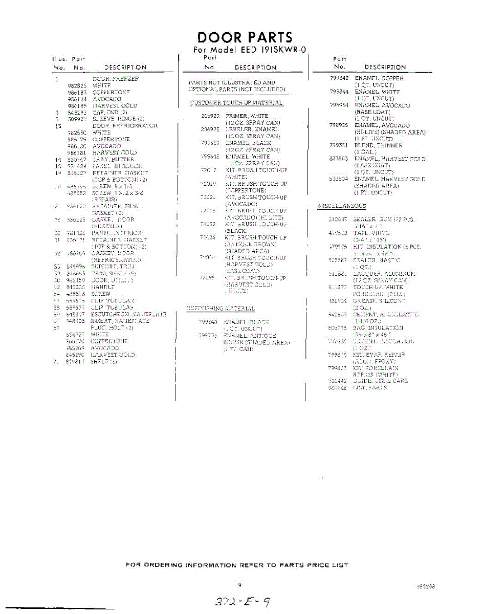 Parts for Whirlpool EED191SKWR0: 09 - Lit / Optional Parts