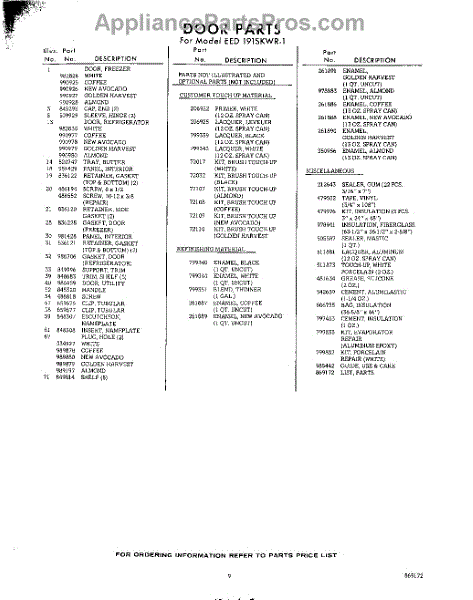 Parts for Whirlpool EED191SKWR1: 09 - Lit / Optional Parts