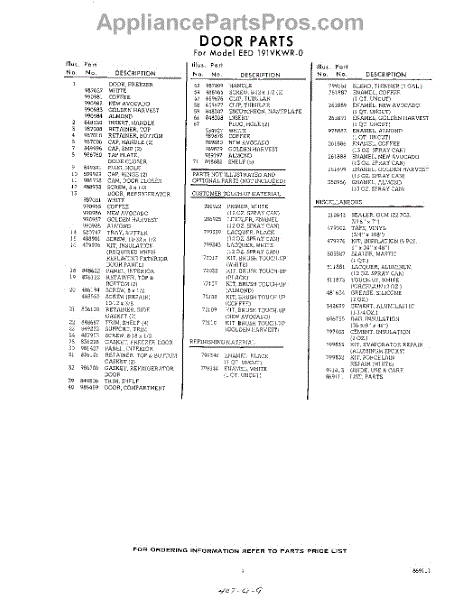Parts for Whirlpool EED191VKWR0: 09 - Lit / Optional Parts
