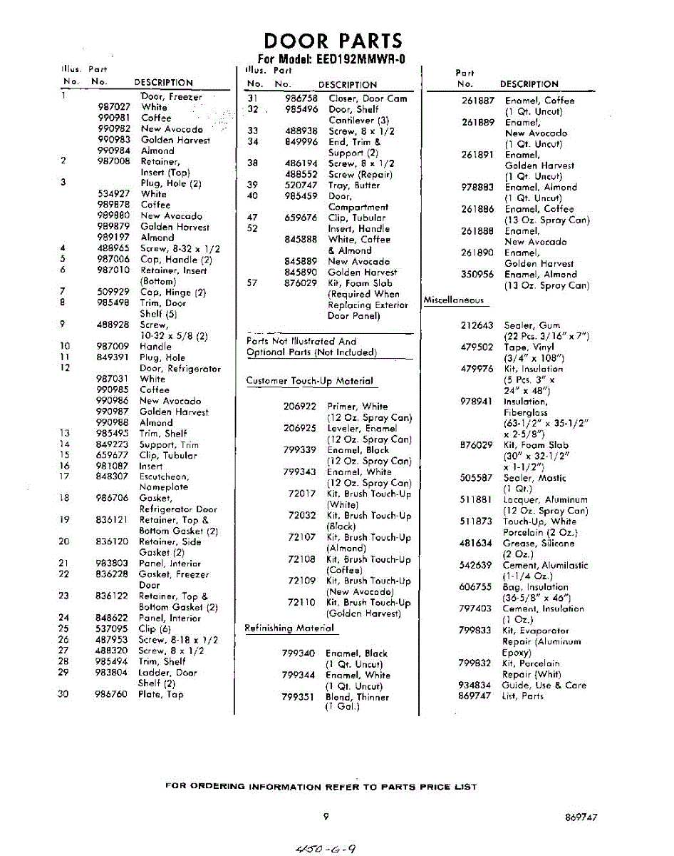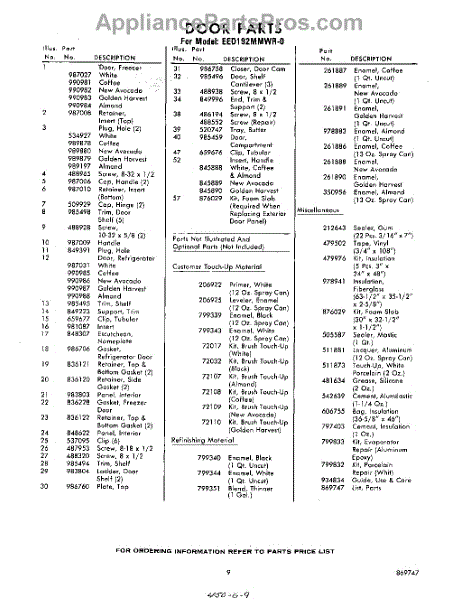 Parts for Whirlpool EED192MMWR0: 09 - Lit / Optional Parts