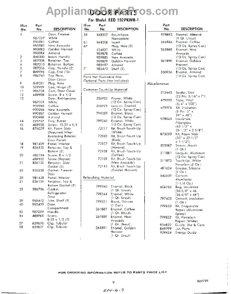 Parts for Whirlpool EED192PKWR1: 09 - Lit / Optional Parts