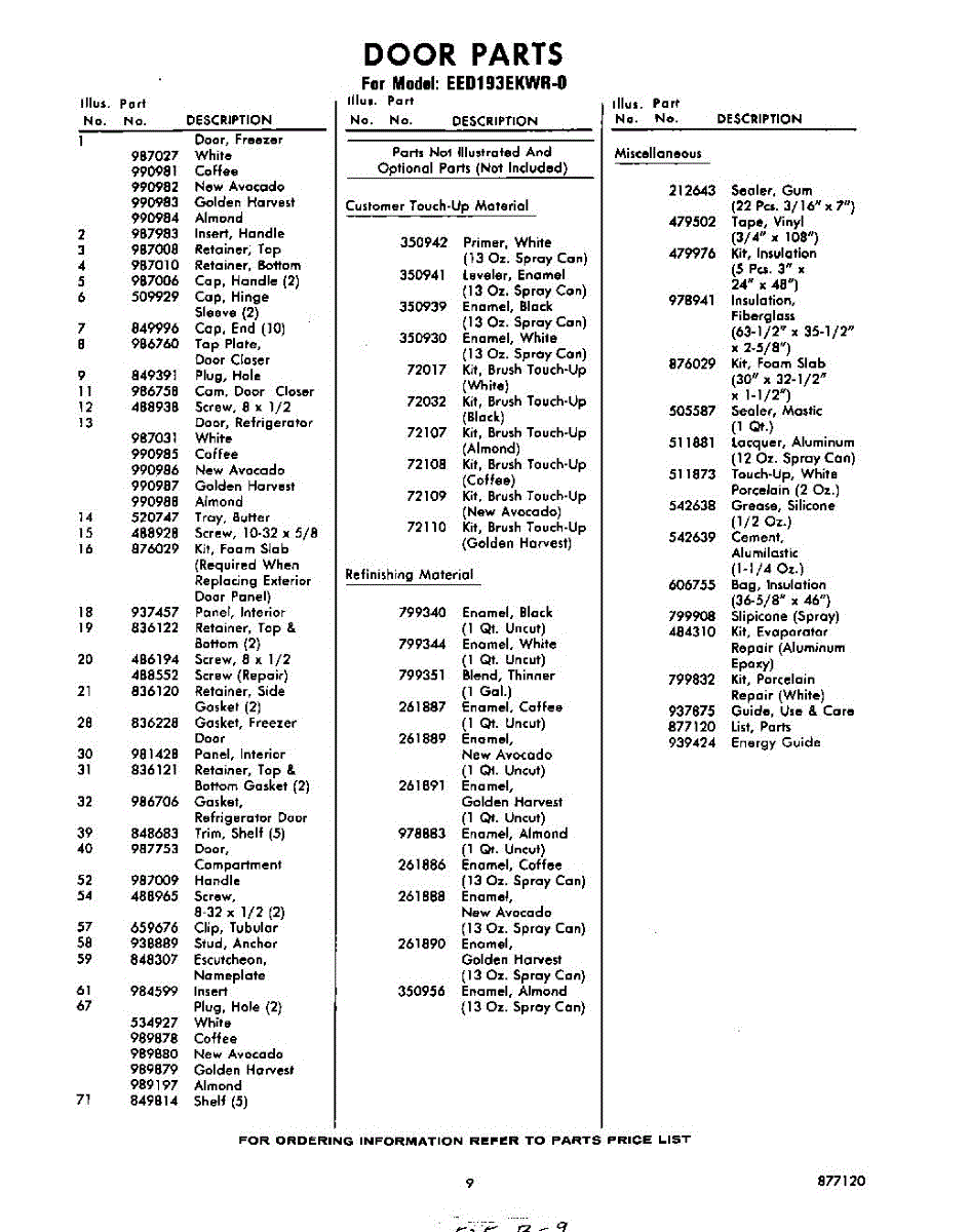 Parts for Whirlpool EED193EKWR0: 09 - Lit / Optional Parts