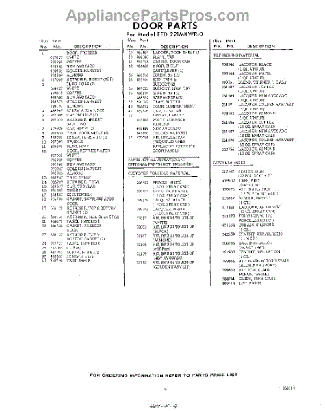 Parts for Whirlpool EED221MKWR0: 09 - Lit / Optional Parts