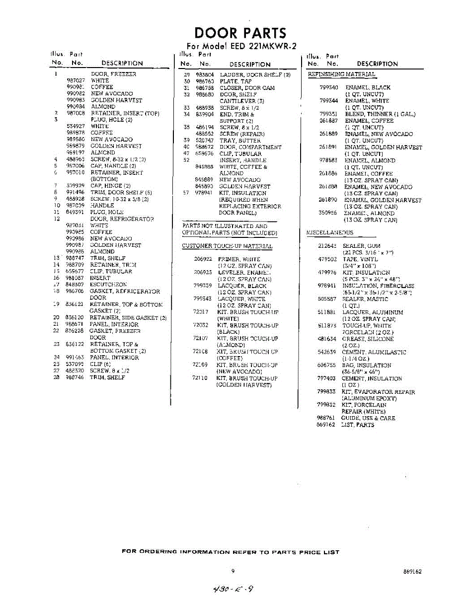Parts for Whirlpool EED221MKWR2: 09 - Lit / Optional Parts