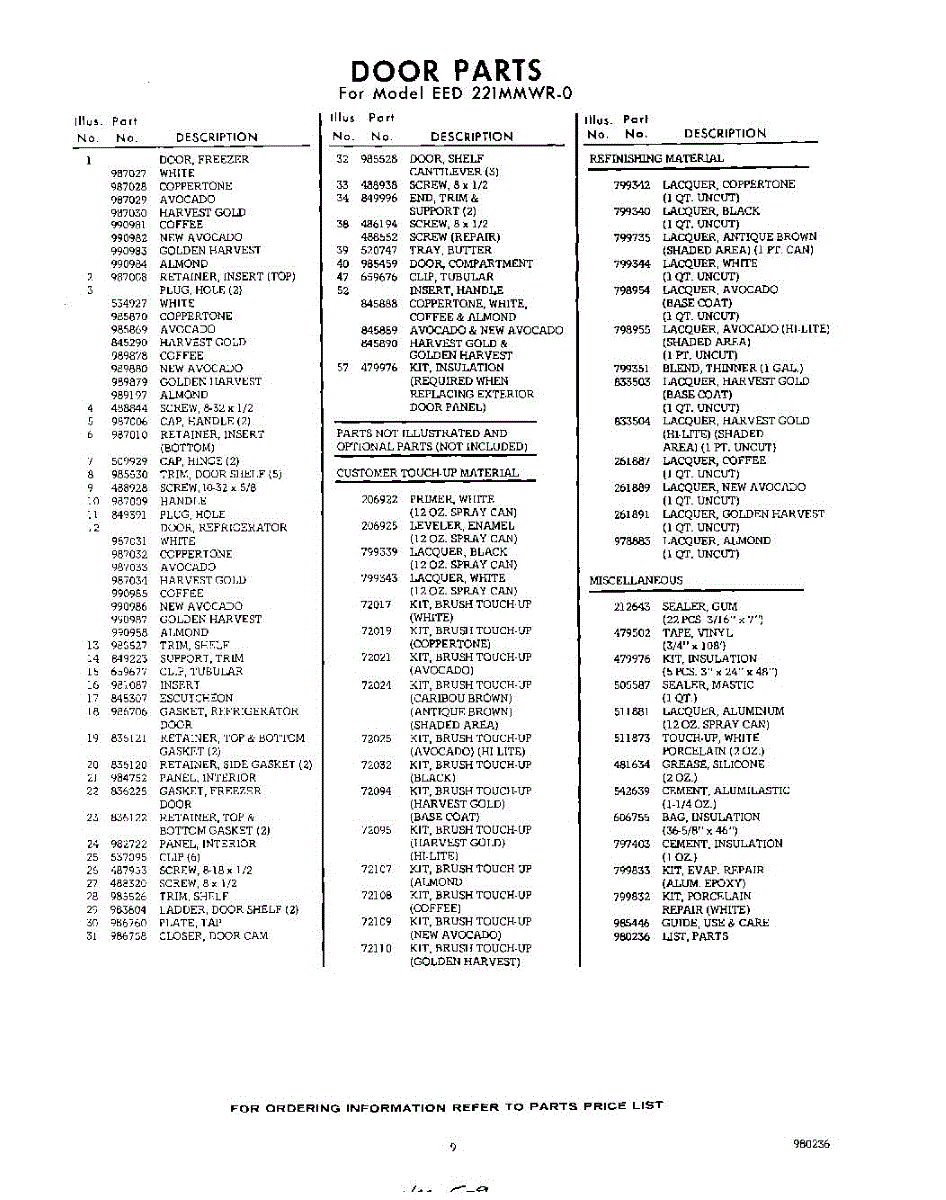 Parts for Whirlpool EED221MMWR0: 09 - Lit / Optional Parts