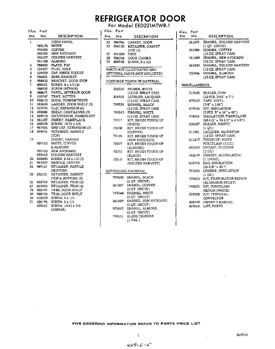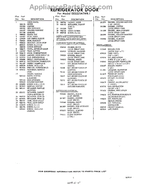 Parts for Whirlpool EED221MTWR1: 05 - Lit / Optional Parts