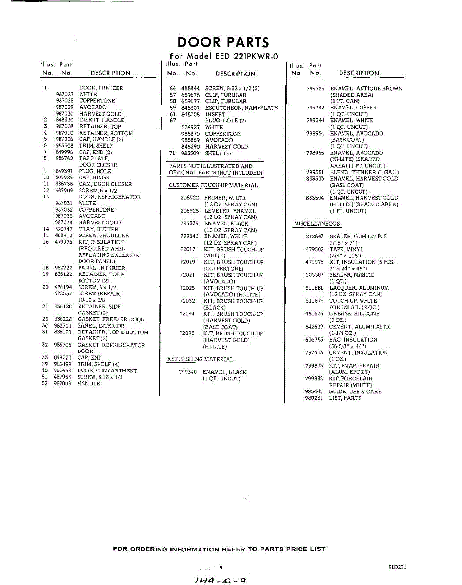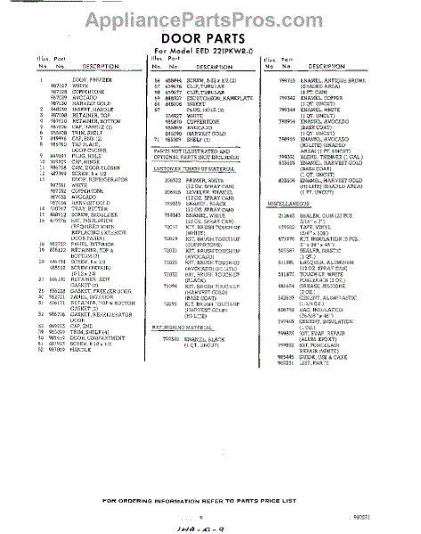 Parts for Whirlpool EED221PKWR0: 09 - Lit / Optional Parts