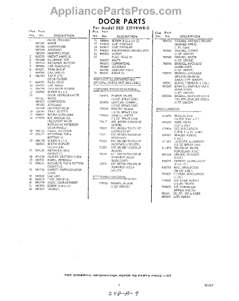 Parts for Whirlpool EED221VKWR0: 09 - Lit / Optional Parts