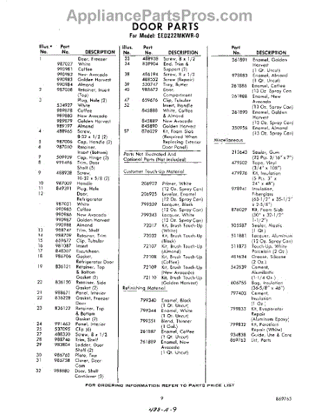 Parts for Whirlpool EED222MKWR0: 09 - Lit / Optional Parts