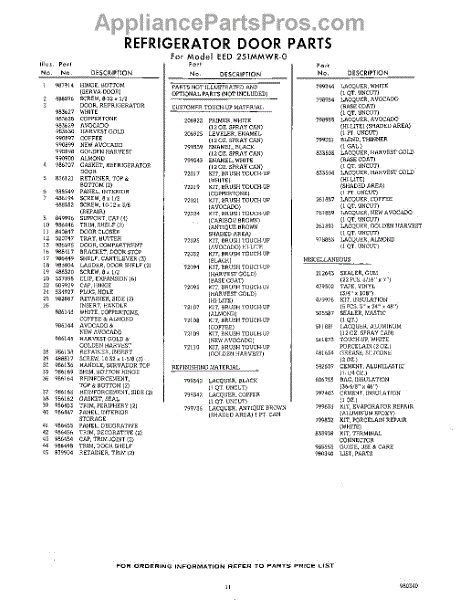 Parts for Whirlpool EED251MMWR0: 11 - Lit / Optional Parts