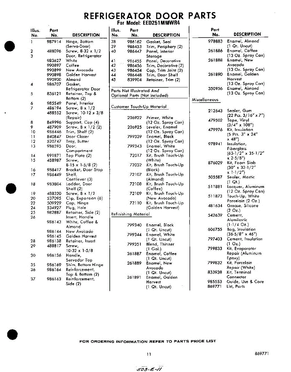 Parts for Whirlpool EED251MMWR4: 11 - Lit / Optional Parts